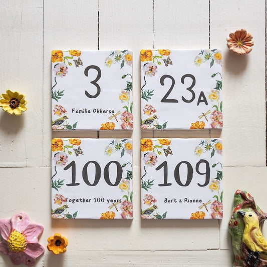 Enkele gepersonaliseerde tegels hebben gouden details, dan is de levertijd is 3 weken.
