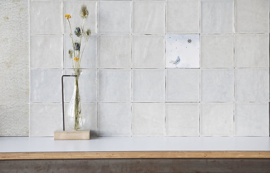 Onze blanco tegeltjes zijn hitte- en waterbestendig. Prachtig in keuken of badkamer in combinatie met StoryTiles met een design.