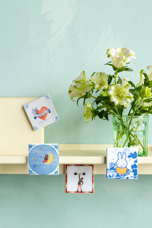 De mini tegeltjes zijn 6x6 cm en zijn kleiner dan onze gewone tegels uit de collectie. Het zijn magneten.