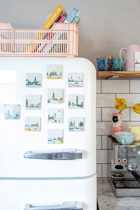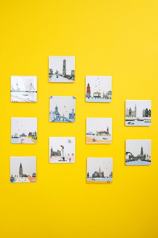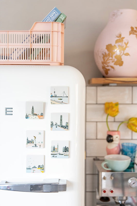 De mini tegeltjes zijn 6x6 cm en zijn kleiner dan onze gewone tegels uit de collectie. Het zijn magneten.