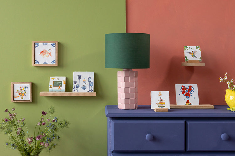 Put your tile in the spotlight on a wall shelf! Fun to combine different tile sizes.
