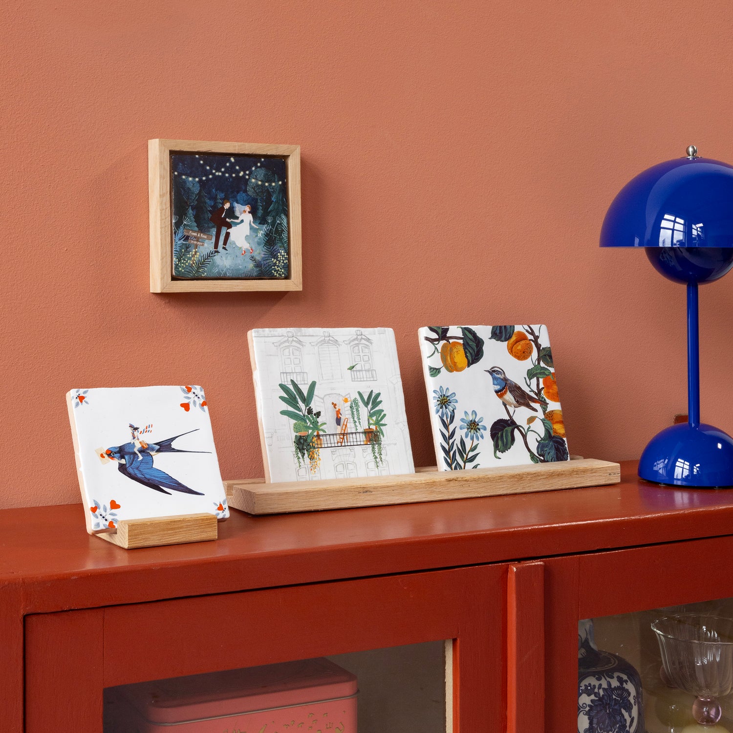 You can hang the tiles on your wall as a small work of art. Or give a tile as a gift on a special occasion.
