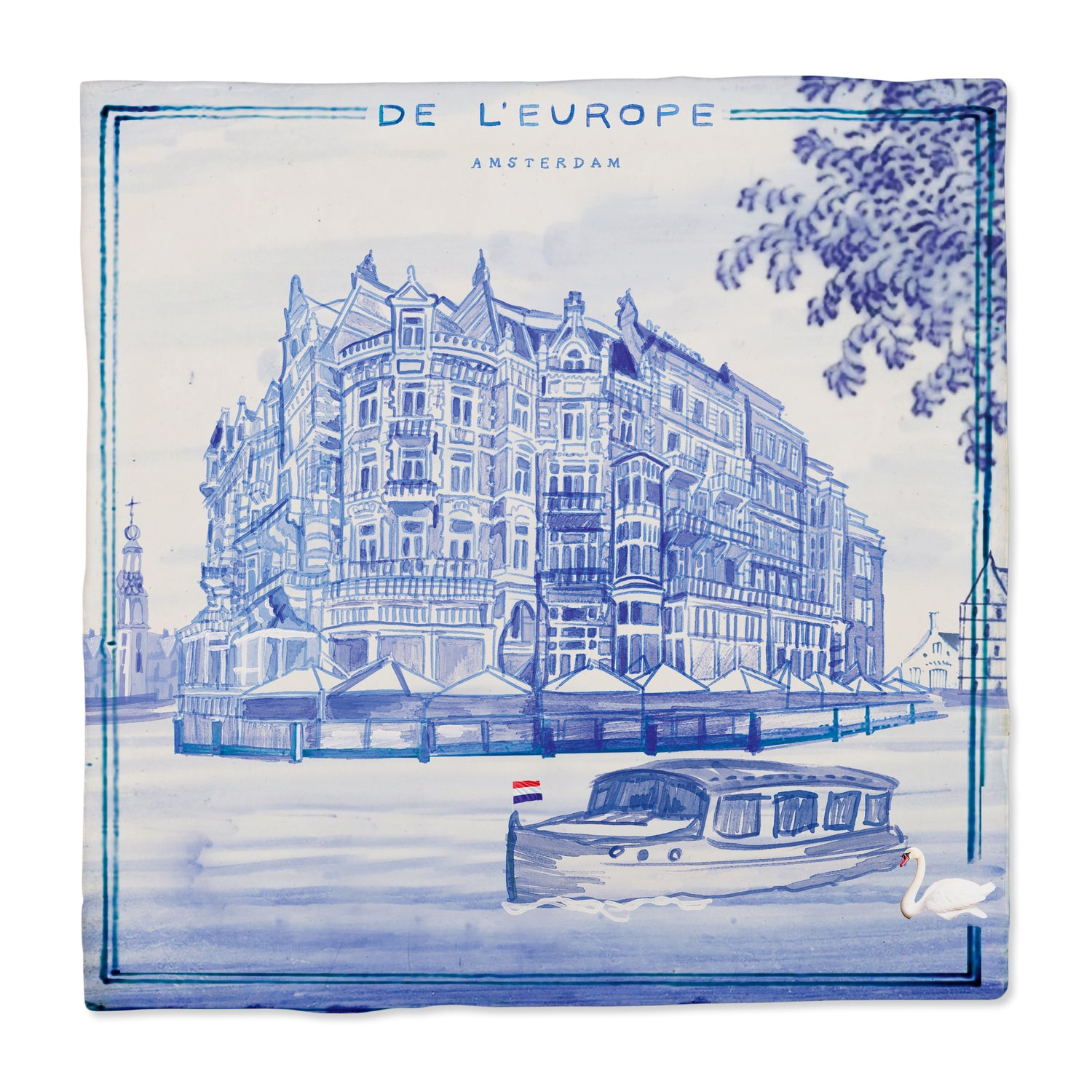 Voor het iconische en prachtige hotel l'Europe in Amsterdam ontwierpen we een Delfts Blauwe tegel. Het hotel zet deze tegel in als relatiegeschenk of als cadeau voor events in het hotel.